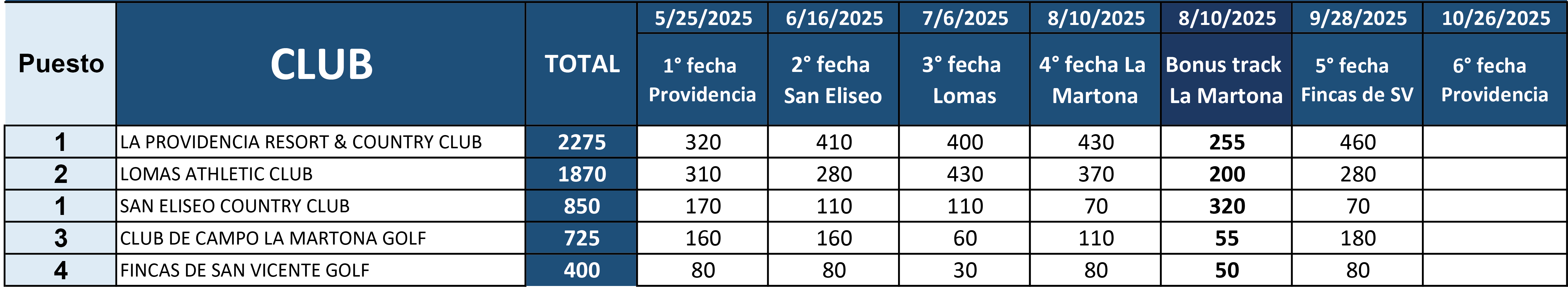 Ranking Interclubes 2025
